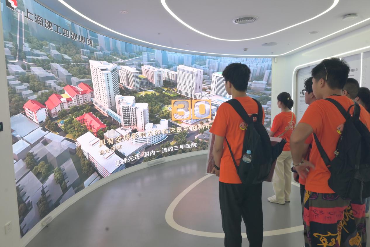 7月9日,实践队前往上海建工四建集团进行参观学习。上海建工四建集团工程研究院向彦州带领实践队参观了集团展馆,详尽全面的介绍了集团所获成就、发展历程、技术应用,结合5G、工业互联网、大数据、人工智能等“新基建”技术,呈现建筑业智能化发展趋势。其中,AI技术的使用令人耳目一新,集团的AI系统可以用于检索、计算、快速绘图识图以及方案制定等。同时,集团的建筑智慧运维平台同样配备有AI助手,具有快速查询、远程操控、监测人员轨迹等功能。