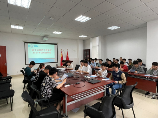 为提高公司研究生应征入伍的积极性,增进研究生对征兵政策的了解,5月19日公司在公司会议室举行2021年征兵宣讲会,公司党委副书记周冬梅、研究生辅导员阮文杰,公司2019级和2020级符合入伍年龄要求的研究生参会。