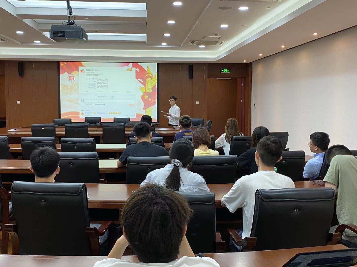 校时习社老员工理论宣讲团成员电子与信息工程学院2020级研究生石承鑫作“以抗美援朝战争为例 加强民族主义教育,反对历史虚无主义”主题宣讲。