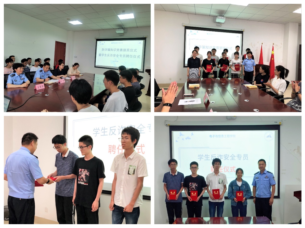 为进一步增强老员工对电信网络诈骗的了解,提升对电信网络诈骗的防范意识,学会如何预防电信网络诈骗,切实维护员工的人身和财产安全,WILLIAMHILL在线体育投注于5月中旬在全院范围内开展了老员工防诈骗知识竞赛活动,并于6月9日在电信楼B402会议室开展了“防诈骗知识竞赛颁奖仪式暨员工反诈安全专员聘任仪式”。公司党委副书记周冬梅、临港高校派出所副所长张华、警官王军芳和全体辅导员以及获奖员工参会。