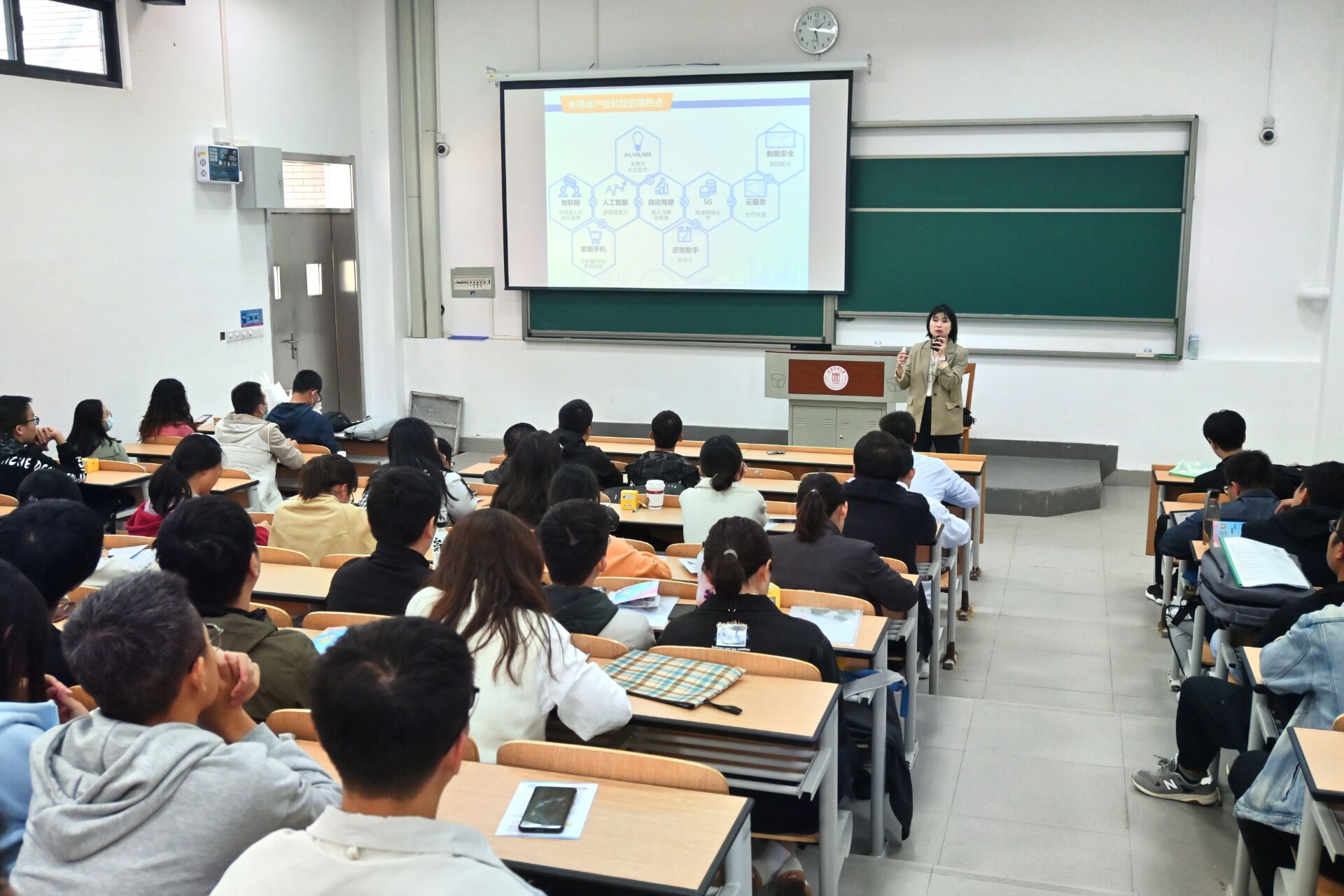 10月29日下午,上海华力微电子有限公司(以下简称“上海华力”)2022届秋季校园招聘宣讲会在临港校区三教101教室成功举办。上海华力工程部科长赖朝荣、人力资源部招聘科专员施依依等组成的9人招聘团队来公司宣讲招聘,WILLIAMHILL在线体育投注承办此次招聘会,公司各二级公司的100余位本科生、硕士研究生参加。