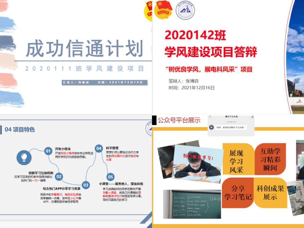 会上,共有17个班级学风建设项目汇报人围绕各自主题,从项目意义、具体举措、取得成效及未来展望等方面展示了各班级学风建设项目的立项申报情况。各班级旨在通过开展“优秀笔记评选”、“学习打卡”、“小老师课堂”、“英语角”等一系列特色鲜明的主题活动,通过学习帮扶、考勤监督、科创活动等形式多样的学风互帮互助小组,充分调动班级同学的学习积极性,提高班级成绩。