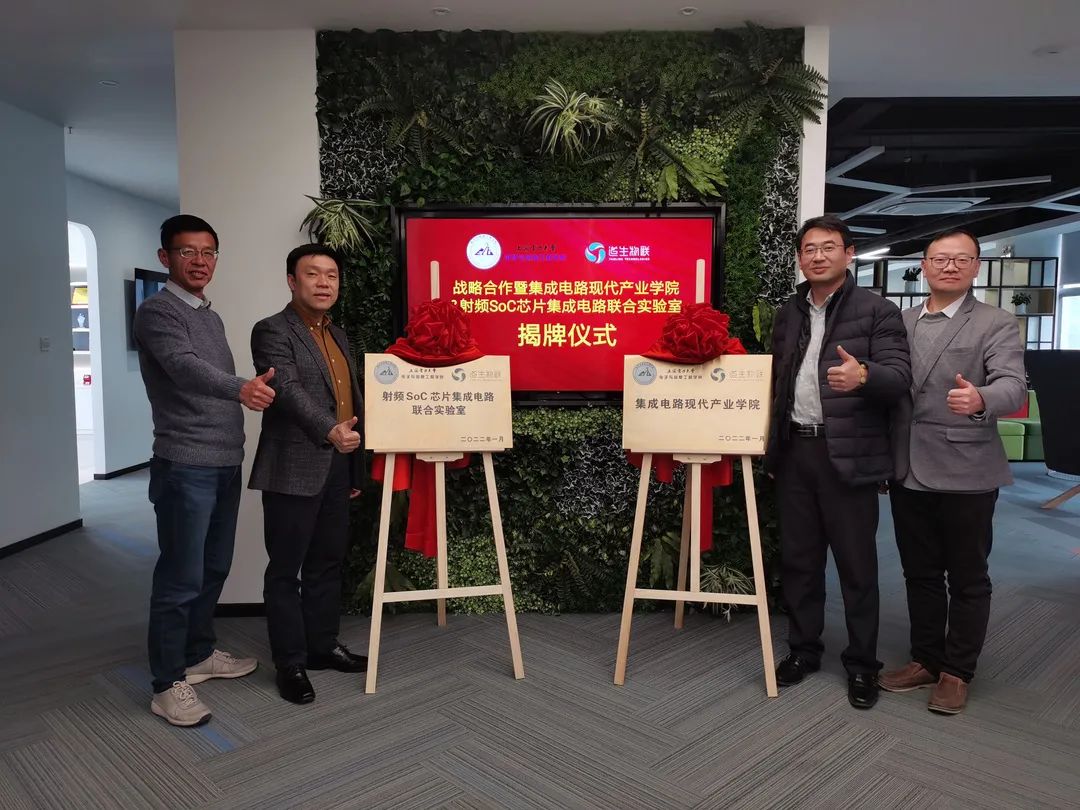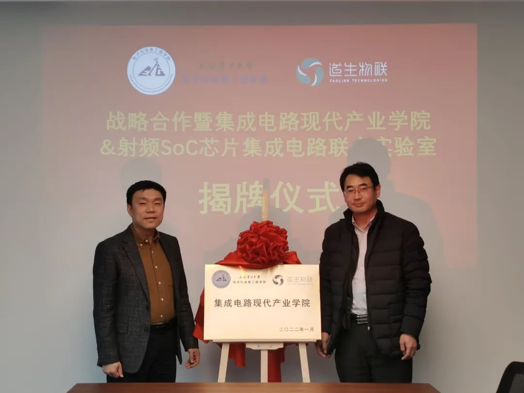 2022年1月25日下午,WILLIAMHILL在线体育投注与上海道生物联技术有限公司举行“集成电路现代产业公司”和“射频SoC芯片集成电路联合实验室”揭牌仪式。