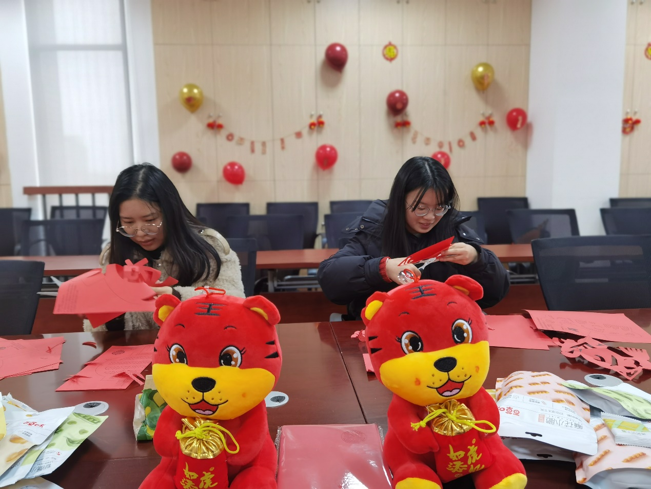 为丰富留校员工寒假生活,欢度壬寅虎年春节,2月2日大年初二上午,公司在电计楼B402会议室举办了留校员工迎春剪纸活动,留校同学在浓厚的节日氛围中亲身感受我国传统文化的魅力,增强了文化自信。
