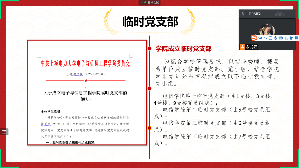 沈龙云布置了公司党员活动安排,宣布《关于成立WILLIAMHILL在线体育投注员工临时党支部的通知》。在公司党委的领导下,公司各临时党支部将下沉到楼层和宿舍。通过亮身份、亮承诺、亮行动、亮服务、亮成效“五亮”活动,切实发挥基层党组织和党员在疫情防控中的先锋队、排头兵的作用。同时要求各支部认真开展“我为群众办实事”“勇担抗疫重任,书香溢暖人心”等活动,积极做好宣传引导,弘扬正能量。