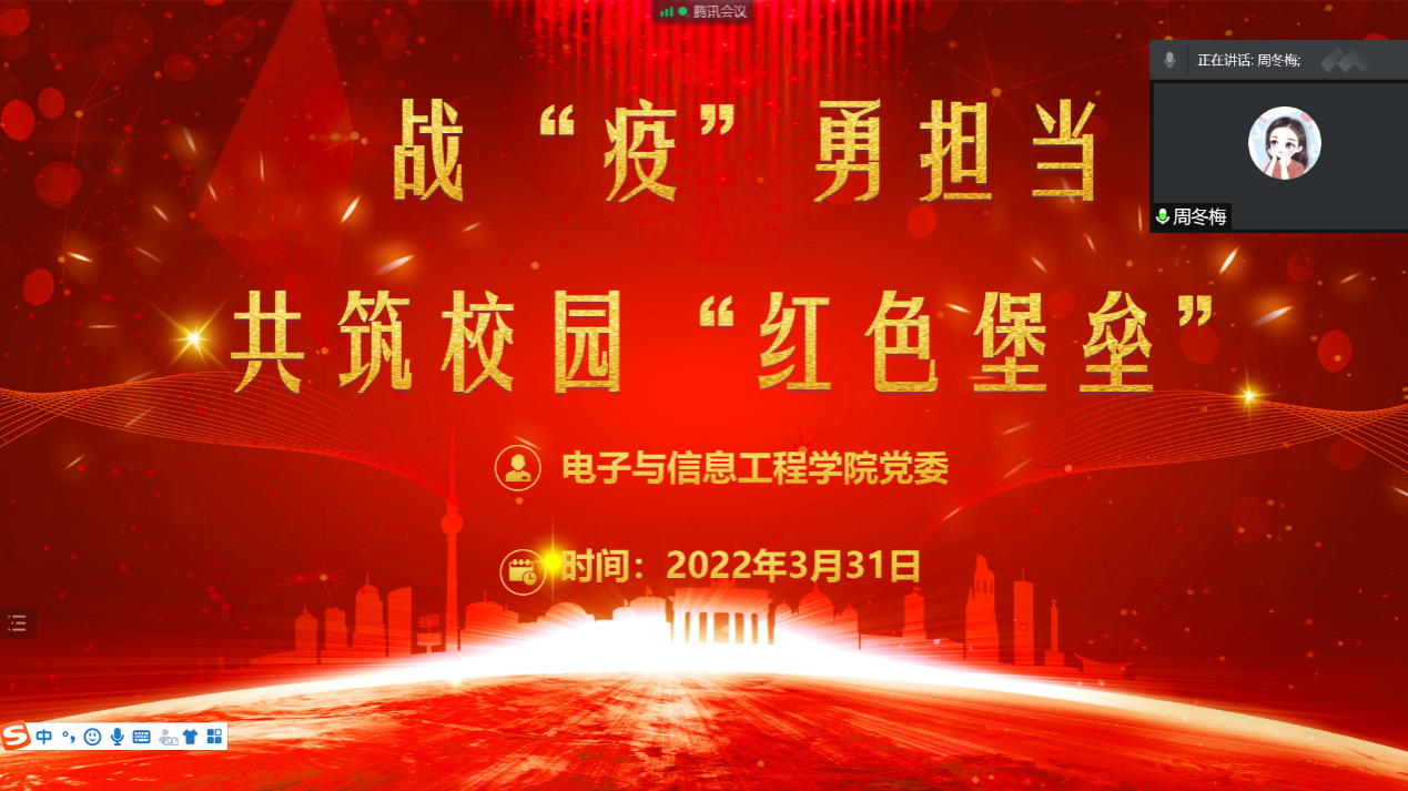 周冬梅宣布成立“电子与信息工程公司党员示范岗”,研究生党员代表贾明潇、本科生党员代表潘威宇现场参加了授旗仪式。疫情当前,广大党员要冲锋在前,扎实工作,以身作则。立标杆,做表率,让党旗在抗疫一线高高飘扬,构筑疫情防控坚固的“红色堡垒”。