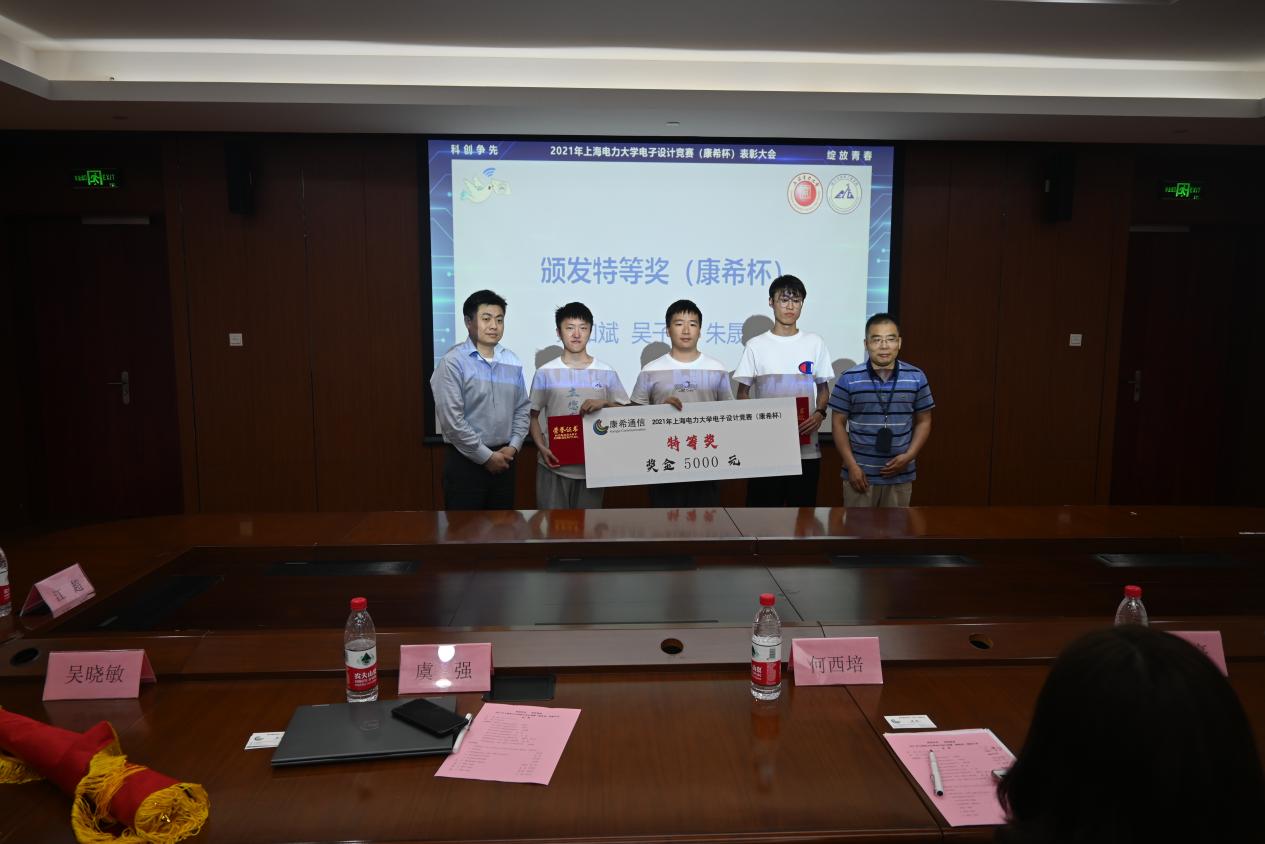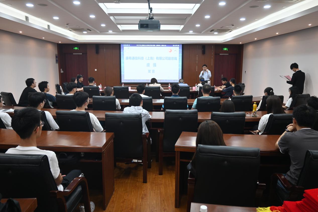 6月8日下午,“科创争先,绽放青春”2021年度WILLIAMHILL在线体育投注电子设计竞赛(康希杯)表彰大会于学术楼303成功举行。康希通信科技(上海)有限公司副总裁虞强、人事行政经理吴晓敏受邀与会,出席本次大会的嘉宾有公司教务处副处长吴懋亮、公司党委书记何西培、党委副书记周冬梅、副经理赵琰、WILLIAMHILL在线体育投注科创中心主任江超、自动化工程公司电子设计竞赛负责人康姝艺和戚尔江,本次电子设计竞赛(康希杯)的60余名获奖代表参加。