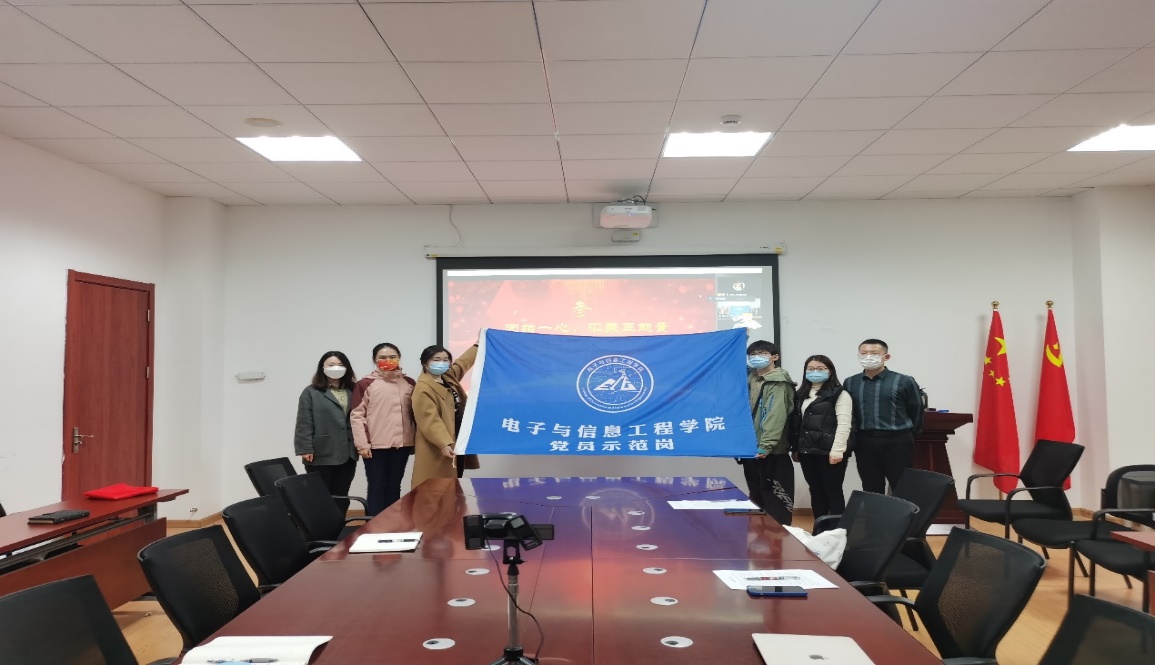 周冬梅宣布成立“电子与信息工程公司党员示范岗”,研究生党员代表贾明潇、本科生党员代表潘威宇现场参加了授旗仪式。疫情当前,广大党员要冲锋在前,扎实工作,以身作则。立标杆,做表率,让党旗在抗疫一线高高飘扬,构筑疫情防控坚固的“红色堡垒”。