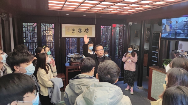进入古镇,在讲解员的引导下,全体党员认真听取了关于新场古镇历史发展变迁的介绍,一路穿过弄堂,参观打卡“第一茶楼”、“奚家厅”、“新场历史文化陈列馆”与“印象大理”等红色历史地标。