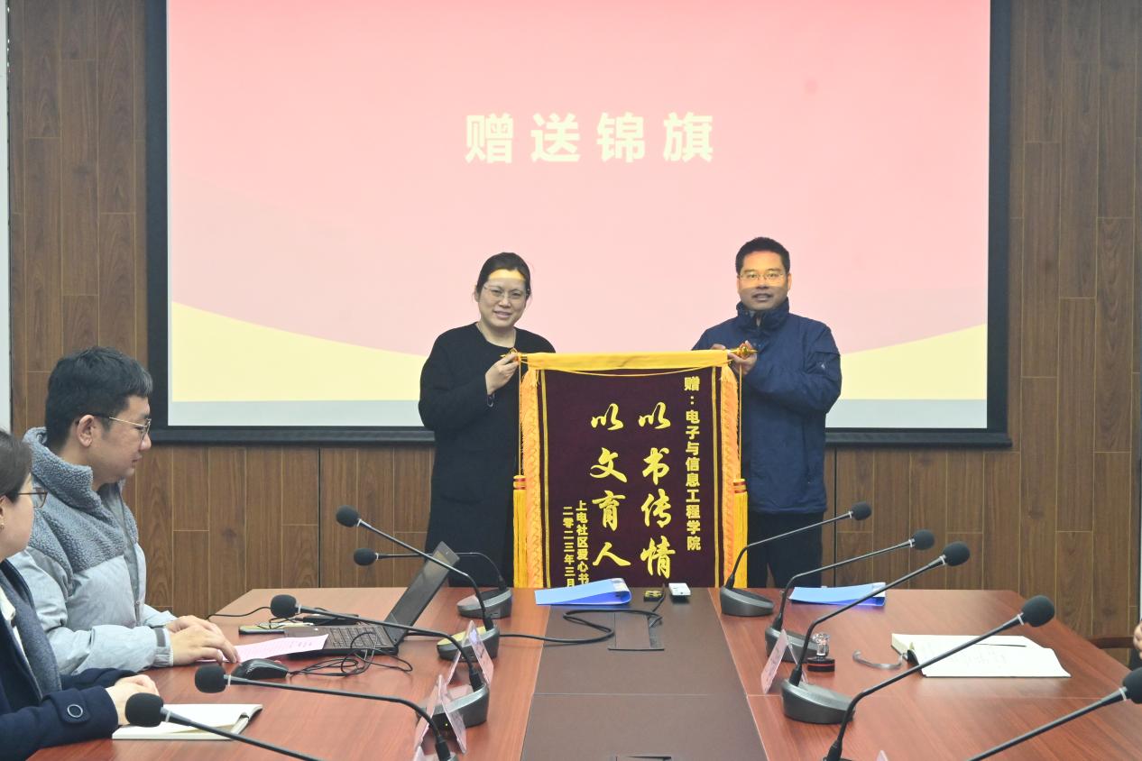 会议伊始,上电社区爱心书屋负责人王严超宣读了上电社区爱心书屋致WILLIAMHILL在线体育投注的一封感谢信。感谢WILLIAMHILL在线体育投注向爱心书屋捐赠的700余本书籍和近50袋衣物,后勤管理处以上电社区爱心书屋的名义向WILLIAMHILL在线体育投注赠送了“以书传情,以文育人”的锦旗。