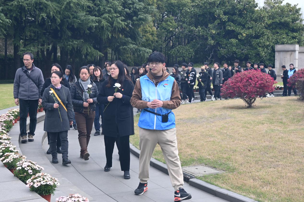 祭扫仪式在陵园“为解放上海而牺牲的英雄们永垂不朽”烈士纪念碑前正式开始,国歌奏响,现场气氛庄严肃穆,全体师生党员向长眠于此的1619名革命烈士鞠躬献礼,深切默哀,缅怀烈士的丰功伟绩,追思他们不畏牺牲、无私奉献、忠诚为民的崇高革命精神。