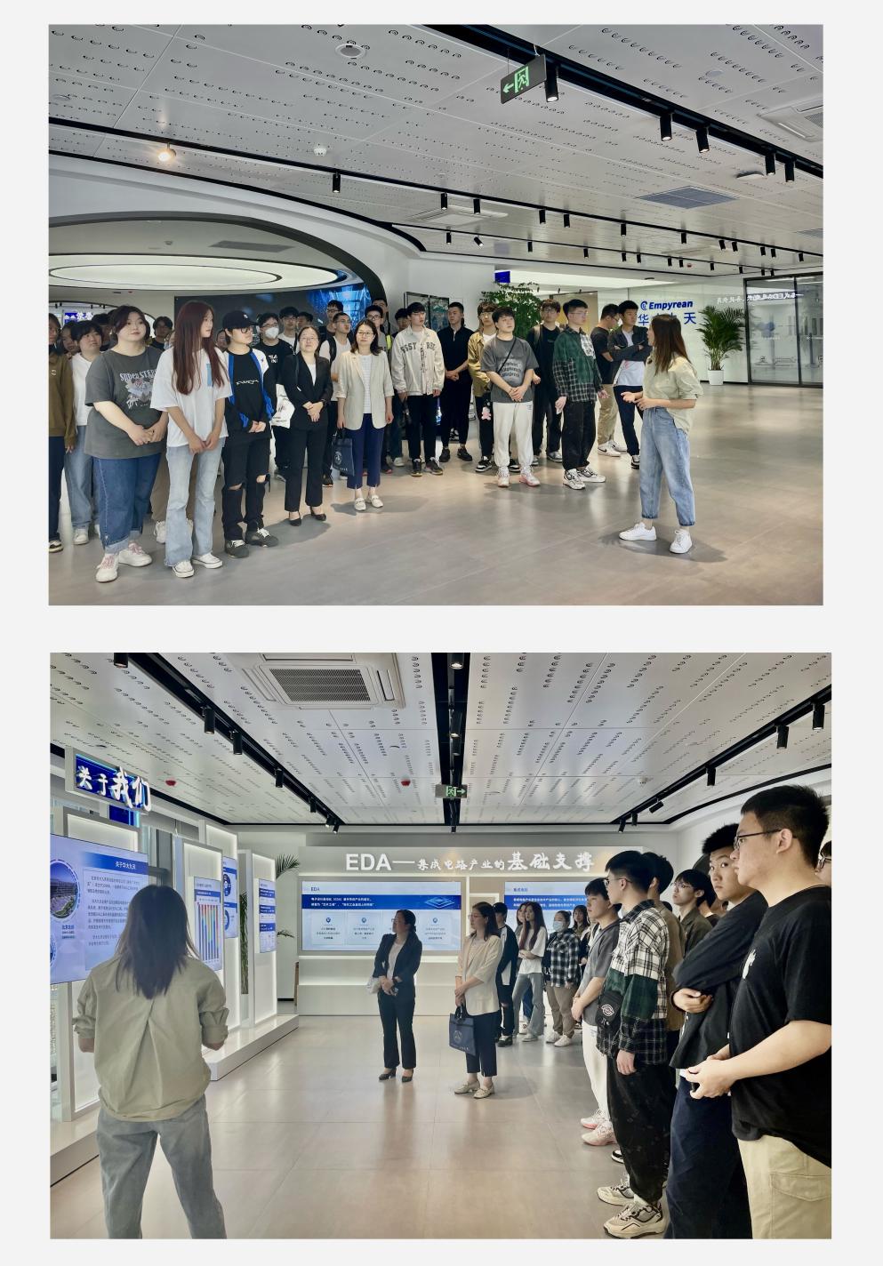 华大九天校企合作负责人腊晓丽带领全体师生参观了位于临港的企业展厅,了解华大九天的历史发展。华大九天于2009年在北京成立,2020年在上海成立子公司,公司的主要产品包括模拟电路设计全流程EDA工具系统、射频电路设计EDA工具、数字电路设计EDA工具、平板显示电路设计全流程EDA工具系统、晶圆制造EDA工具和先进封装设计EDA工具等EDA软件产品,并围绕相关领域提供包含晶圆制造工程服务在内的各类技术开发服务,多年耕耘,已成为国产EDA行业的龙头企业。