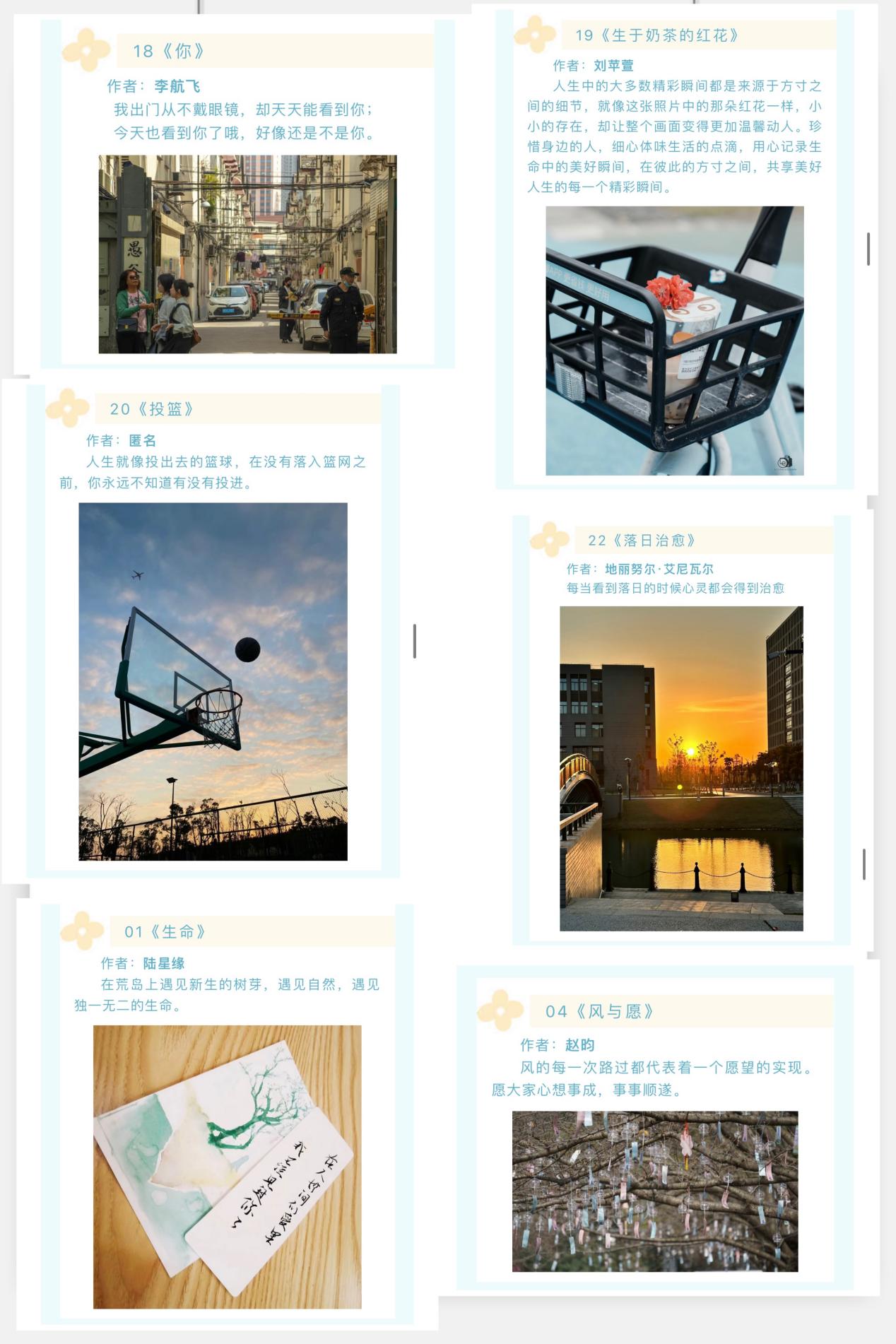 方寸之间意惹情牵,善于发掘自身能量。通过开展摄影作品和书签投稿分享活动,用生动的画面和温暖的话语,来传播快乐、传递能量,活动共计收到公司各年级同学的投稿作品40余份,最终评选出31份作品通过公司微信公众平台进行展示。每一张照片与书签都有自己的声音,每一个文案都传递了作者的思想,这些美好的瞬间可能引起作者与观众之间的共鸣,亦或是不同的思考,最终收获美好的心情。