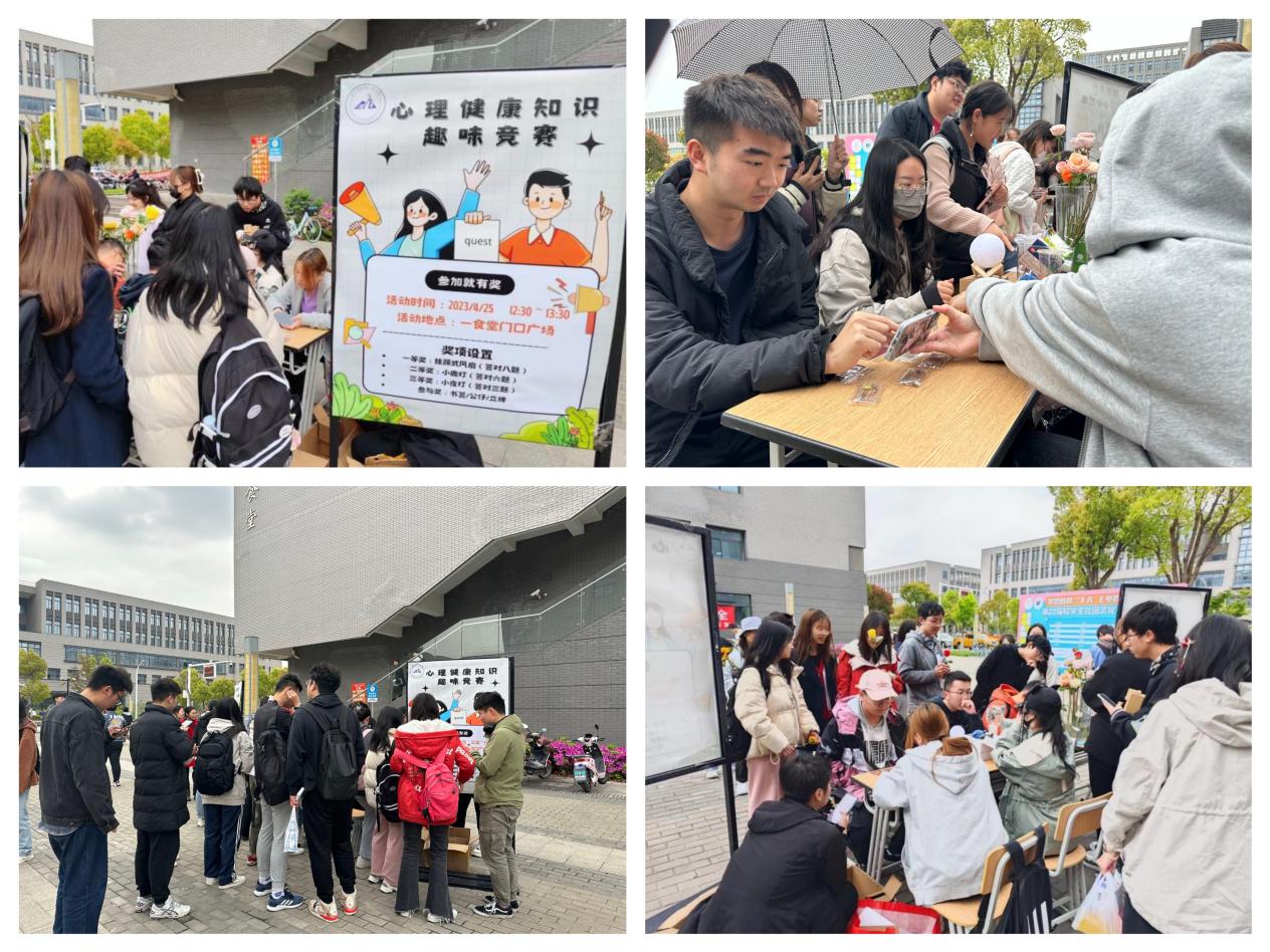 心理健康知识宣传,呼吁关注自身成长。通过线上线下相结合的方式,共计开展了3场心理健康知识宣传活动。3月31日下午,WILLIAMHILL在线体育投注特邀心理健康教育中心蔡雅琦博士为2022级全体新生作“人际关系的自我及相互依赖”心理健康教育专题讲座,使大一新生认识到了人际交往的重要性,学会在自我调节中与他人融洽相处,在未来的学习生活中保持积极向上、阳光乐观的心态,帮助新生更好地适应老员工活。4月25日,在临港校区一食堂门口小广场,举办心理健康知识趣味竞赛活动,以有奖答题的方式,鼓励同学们积极关注自身心理健康,使同学们在放松愉悦的状态中学习到了心理健康知识。此外,以公司微信公众平台为依托,分别从专注力提升、减少心理内耗、告别负面情绪、拯救失落心理四个方面,制作心理健康系列知识推送,引导同学们了解在面临压力和困难时自我调适的方法,以积极心态面对生活。