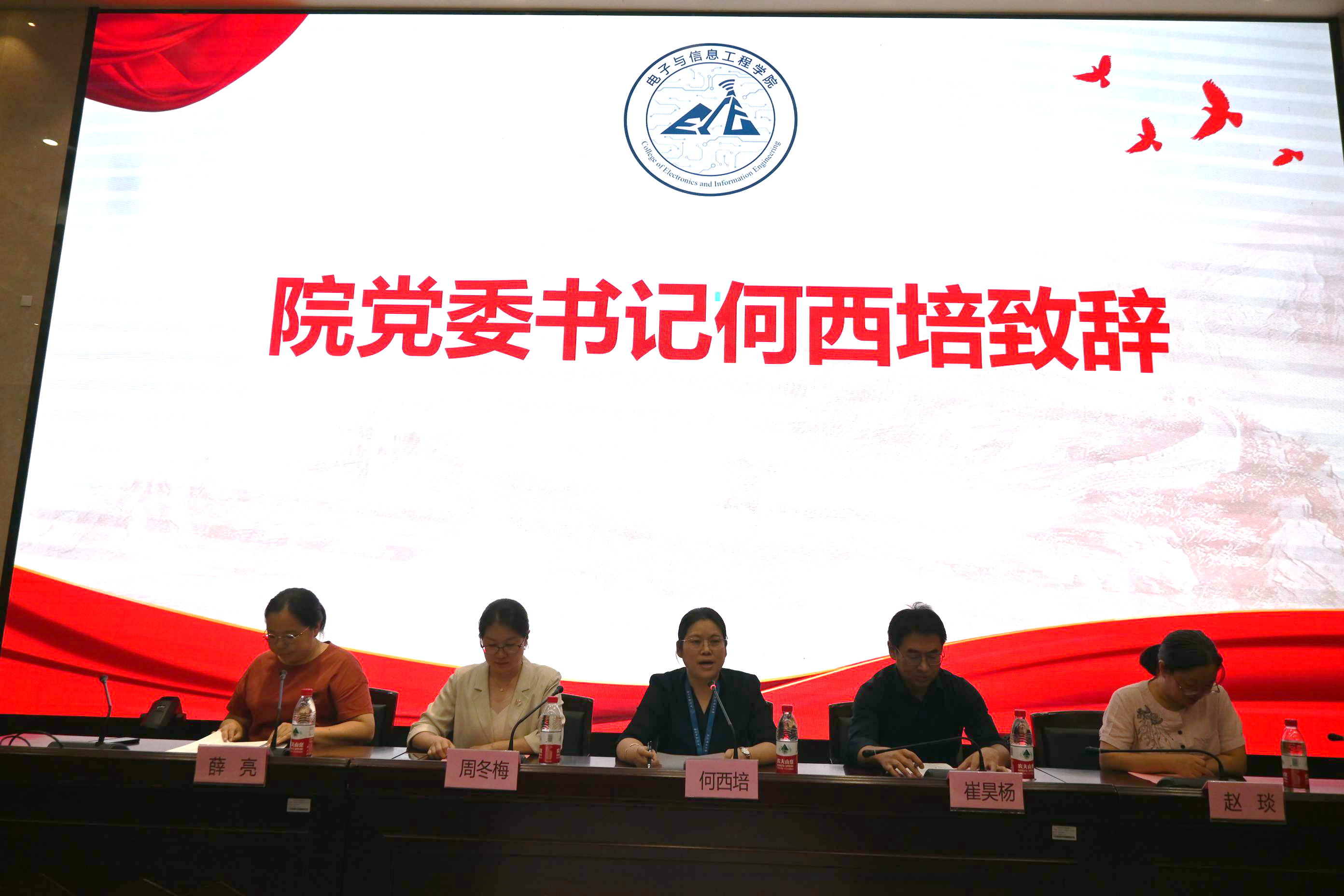 大会伊始,何西培代表全院师生对2023级本科生新生的到来表示热烈欢迎,寄语同学们要志存高远、脚踏实地,在不断的努力学习与研究创新中,挑战自我、追求卓越,把自己的理想同祖国的前途紧密联系在一起,把自己的人生同民族的命运紧密联系在一起,培养过硬本领,努力成长为担当民族复兴大任的时代新人。