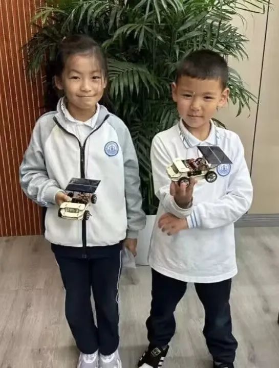 现场互动充分调动起孩子们的热情,志愿者引导孩子们进入本次活动的主题:“智能车模型组装”。通过志愿者生动细致的讲解与示范,孩子们将面前的木架、车轮、太阳能板等套件一步步架构出属于自己的智能车模型。