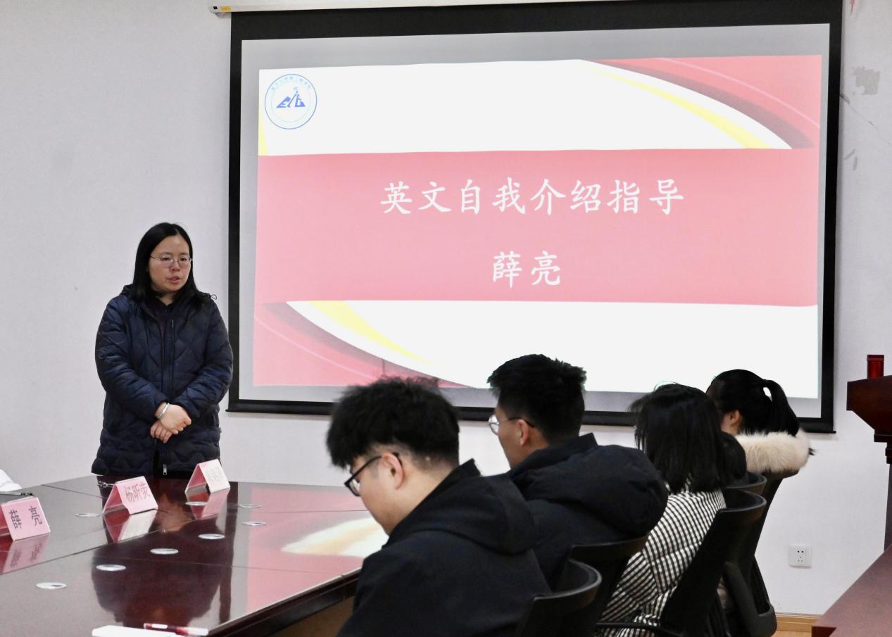 会上,薛亮老师进行了英语自我介绍的指导,强调一志愿的笔试和面试在即,要求通过国家线的同学在冲刺阶段用心准备,认真对待,充分把握住展示自己的机会。