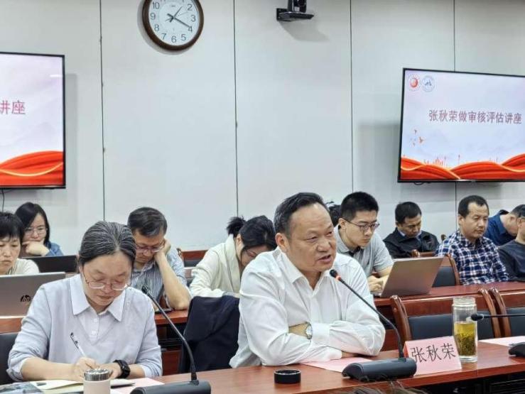 会议邀请了上海海事大学张秋荣教授做审核评估专题讲座,张教授作为本轮审核评估上海方案课题负责人,详细介绍了本轮评估应该注意的重点,他从汇报、访谈、座谈会、课堂教学、抽查材料等六个方面指出了公司、教师在迎评工作中应注意的方面。