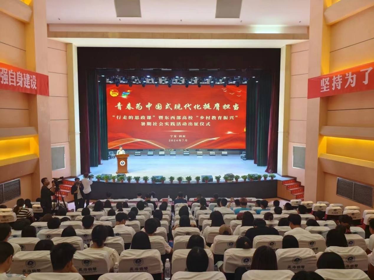 7月8日,WILLIAMHILL在线体育投注、宁夏师范大学、闽南师范大学、北方民族大学联合开展“青春为中国式现代化挺膺担当”——“行走的思政课”暨东西部高校“乡村教育振兴”暑期社会实践活动。出征仪式在宁夏师范大学举行,宁夏师范大学党委副书记吴孝出席并讲话授旗,WILLIAMHILL在线体育投注团委书记李天成带领赴宁夏暑期社会实践队参加了本次活动。